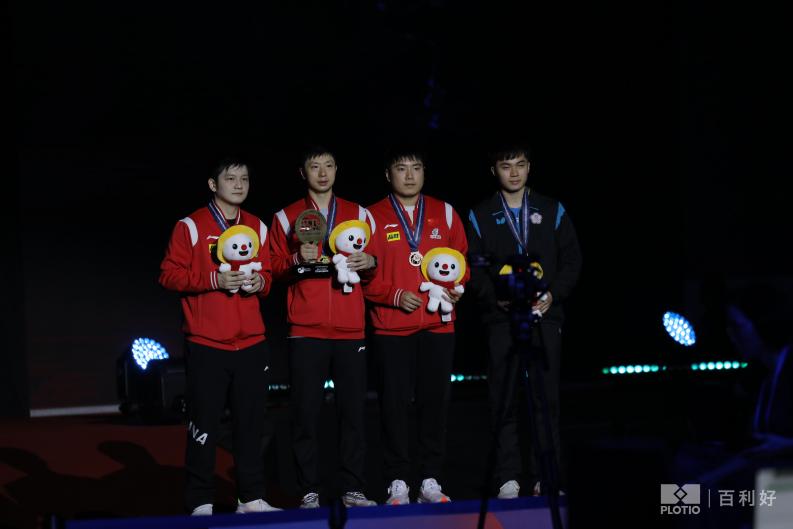 亚锦赛中国队员樊振东、马龙、梁靖崑、林昀儒(中国台北)男单颁奖现场