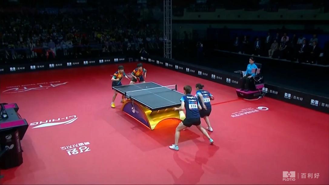 亚锦赛女双决赛现场中国队员陈梦/王曼昱 VS 孙颖莎/王艺迪