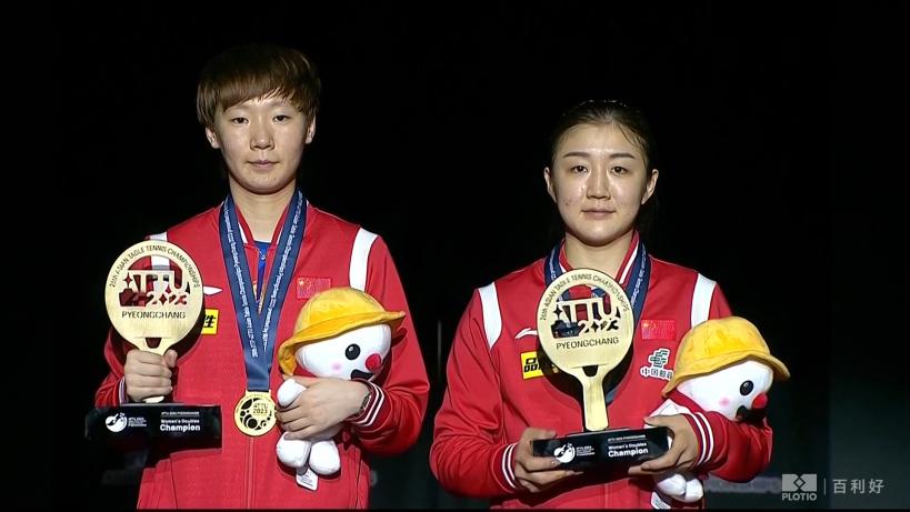 亚锦赛中国队员陈梦/王曼昱女双决赛颁奖现场