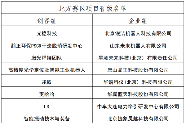 即日北方赛区晋级半决赛名单产生,8个创客组项目、8个企业组项目成功入围: