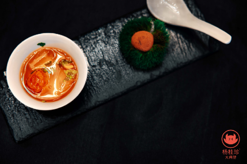 正是出于对品质的高要求,杨桂珍自创立以来先后被政府评为:全国金奖品牌、浙江特色好礼、城市地标美食。2015年至2022年杨桂珍大闸蟹连续八年在全国河蟹大赛中获得“金蟹奖”和“最佳口感奖”,并连续被中央电视台、新华社、人民日报等央媒多次报道。杨桂珍通过一代养蟹人的求索,三代养蟹人的坚持,在成为大闸蟹高端品牌的道路上不断前行。雅合鲜浓香,野喜满时润。8道美味在创意与沉淀之中,传统与现代之内,提炼整合,雕琢打磨,最后呈现在餐盘。于种种由杨桂珍带来的惊喜之中,感受来自时间的沉淀与积累。
