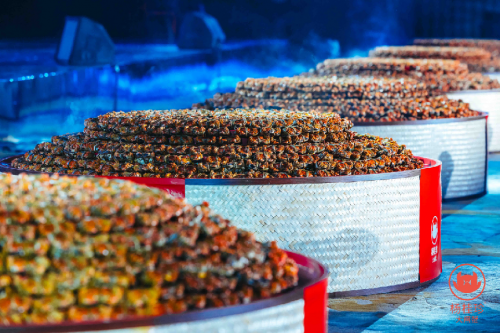 活动现场,六只硕大的蒸笼吸引着宾客们的注意力。随着现场闪烁的灯光亮起,鼓点阵阵,衣袂翻飞,开笼仪式将现场气氛推至高潮。