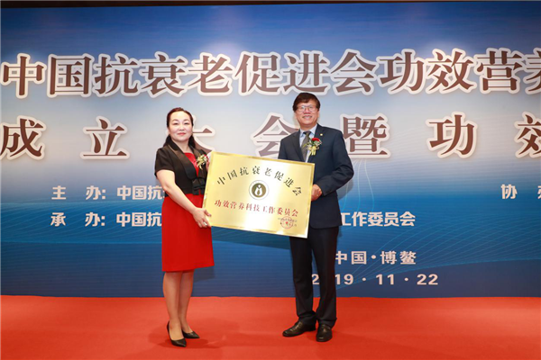原海南省海口市政协主席王云霞女士莅临大会,中国抗衰老促进会副理事长朱怡霖代表总会致辞、中国抗衰老促进会秘书长熊吉莹宣读功效营养科技工作委员会成立的批复文件。
