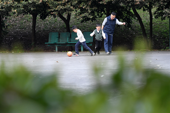 3月8日,重庆部分公园景区有序分批恢复开放,市民在动步公园内踢球。新华社记者 唐奕/摄