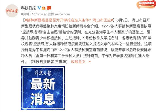 接种新冠疫苗是否为开学报名准入条件?对此,海南海口市回应了!