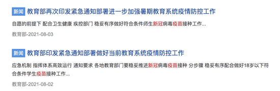 近期,教育部连续印发两个通知,系统部署学校的疫情防控工作,把符合条件学生的疫苗接种工作作为一项重要任务。