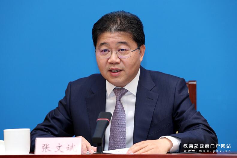 教育部思想政治工作司副司长张文斌介绍国家智慧教育平台思政教育资源有关情况。(中国教育报记者 张劲松/摄)