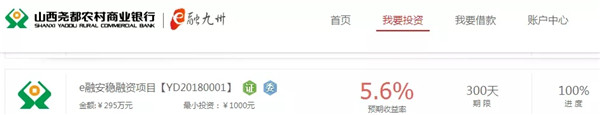 仅凭尧都农村商业银行e融九州投融资平台页面的内容,便会产生很强大的公信力,诱惑力,让人对银行打造的融资平台深信不疑,萌发投资的欲望。