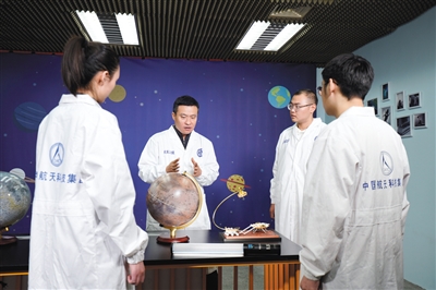 中国航天科技集团,孙泽洲(左二)在和团队成员探讨设计方案。受访者供图