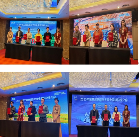 本次推介会迎来关键成果,新沪两地文旅企业现场达成战略协同。喀纳斯、帕米尔、昆仑山等新疆顶级旅游资源方、新疆楼兰金舟国际旅行社与上海实力旅行社集体签约。此举标志着新疆秋冬旅游产品将系统性登陆上海市场,通过线路定制与服务升级,为申城游客开启直达新疆冰雪秘境的全新通道,携手开拓文旅合作新篇章。
