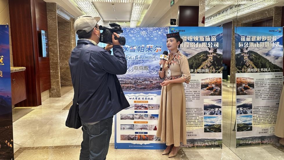 帕米尔旅游区管理委员会推介官孜伯达·加依其向大家介绍:“塔什库尔干县坐落在帕米尔高原东部,是古丝绸之路的重要重镇。这里的旅游资源格外丰富——既有厚重历史,又有壮美的自然景观,更有独特民俗风情!有我国三大石头城之一的塔什库尔干县石头城遗址有我国海拔最高的红其拉甫国门,有被誉为“冰山之父”慕士塔格峰巍峨耸立,有“鸡鸣四国”的瓦罕走廊,蓝如宝石的班迪尔蓝湖,还有金秋时节的塔曼树洞,成了无认真打卡的童话通道,以及“今日走过所有弯路,从此人生尽是坦途”的盘龙古道,最后我在这里诚邀大家游壮美帕米尔做冰山上的来客,我在帕米尔高原等着大家。”