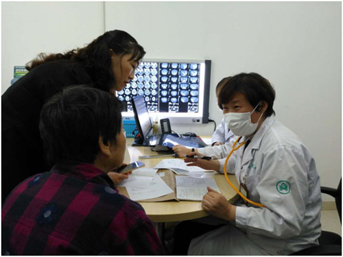 济南市槐荫区南辛庄办事处社区卫生服务中心医护人员在查看患者资料