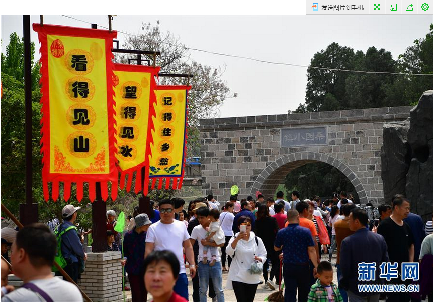 5月1日,游客在河南省鹤壁市淇滨区的桑园小镇游览。