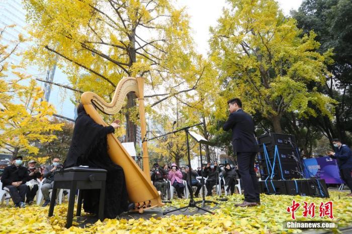 资料图:2020年12月5日,上海音乐厅“银杏音乐会”举行,为冬季的上海增添文艺气息。中新社记者 张亨伟 摄