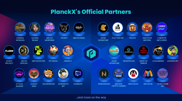 PlanckX目前已与包括仙侠游戏Eternal world、日系未来机甲游戏Mechaverse、 RPG动作游戏Sacred Realm等在内的全球超50家游戏项目达成合作,并且游戏的道具交易也在平台内同期进行。玩家可以通过PlanckX平台完成游戏道具预售和NFT交易,并且可以通过游戏界面的栏目筛选快速进行类型定位,搜寻自己喜欢的游戏和交易最火热的NFT,还可以根据NFT的交易数据对交易进行分析,优化NFT的交易成本。