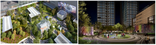 信达中心写字楼、信达·益田假日广场和JW万豪酒店的经典组合,开启了城央之芯品质商务生活新模式。未来,多区域、空中花园、多广场、室内外结合等空间形态上的创新和突破,将之前杂乱无序的枢纽项目进行了科学的拆解和整合,再造“城市中心”。